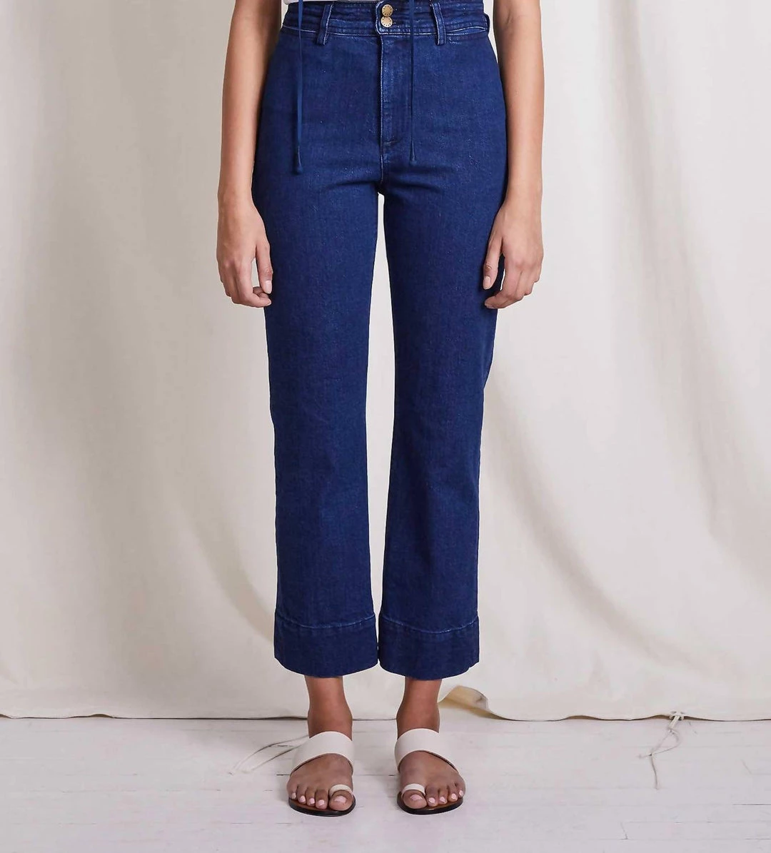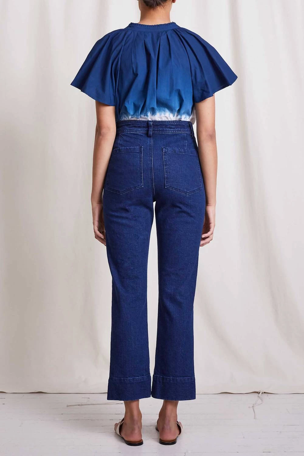 A structured denim straight-leg pair with just the right amount of stretch, the Bahia are cut for a mid-rise fit, finished with a zip-fly and our signature double-button closure detail. The subtle kick-flare, elongated cuff, and dark-wash make this pair super versatile.-ΓΒ Machine Wash Cold on Gentle, Lay Flat to Dry