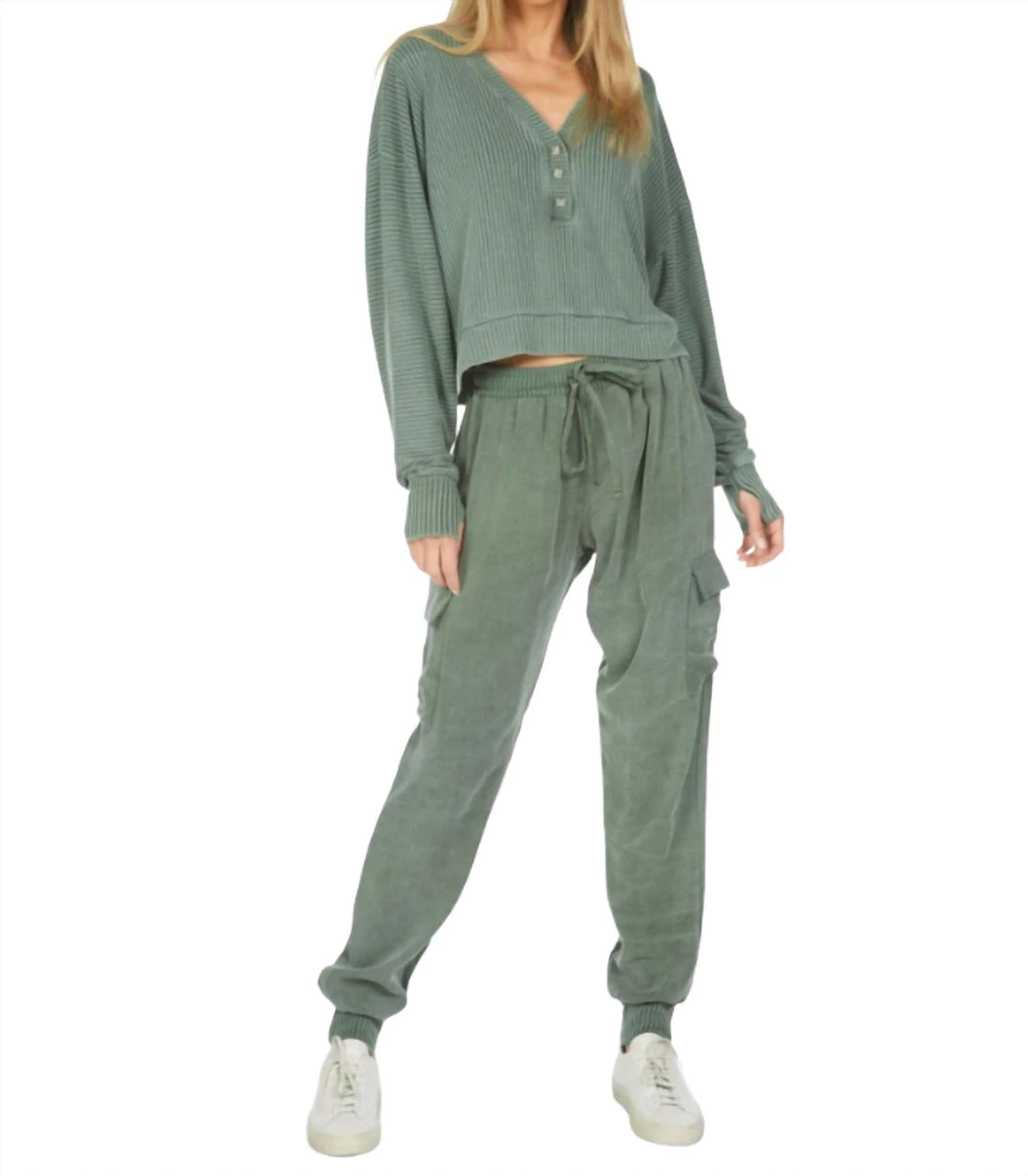94% Rayon 6% SpandexMade in LAΓΒ Wash Cold, Lay Flat to DryML Signature Soft Rib Knit FabricOversized/ Boyfriend FitDropped Shoulders & Cropped LengthPartial Front Button ClosureNickel Pyramid ButtonsThumbhole Cut-OutsPigment Dye
